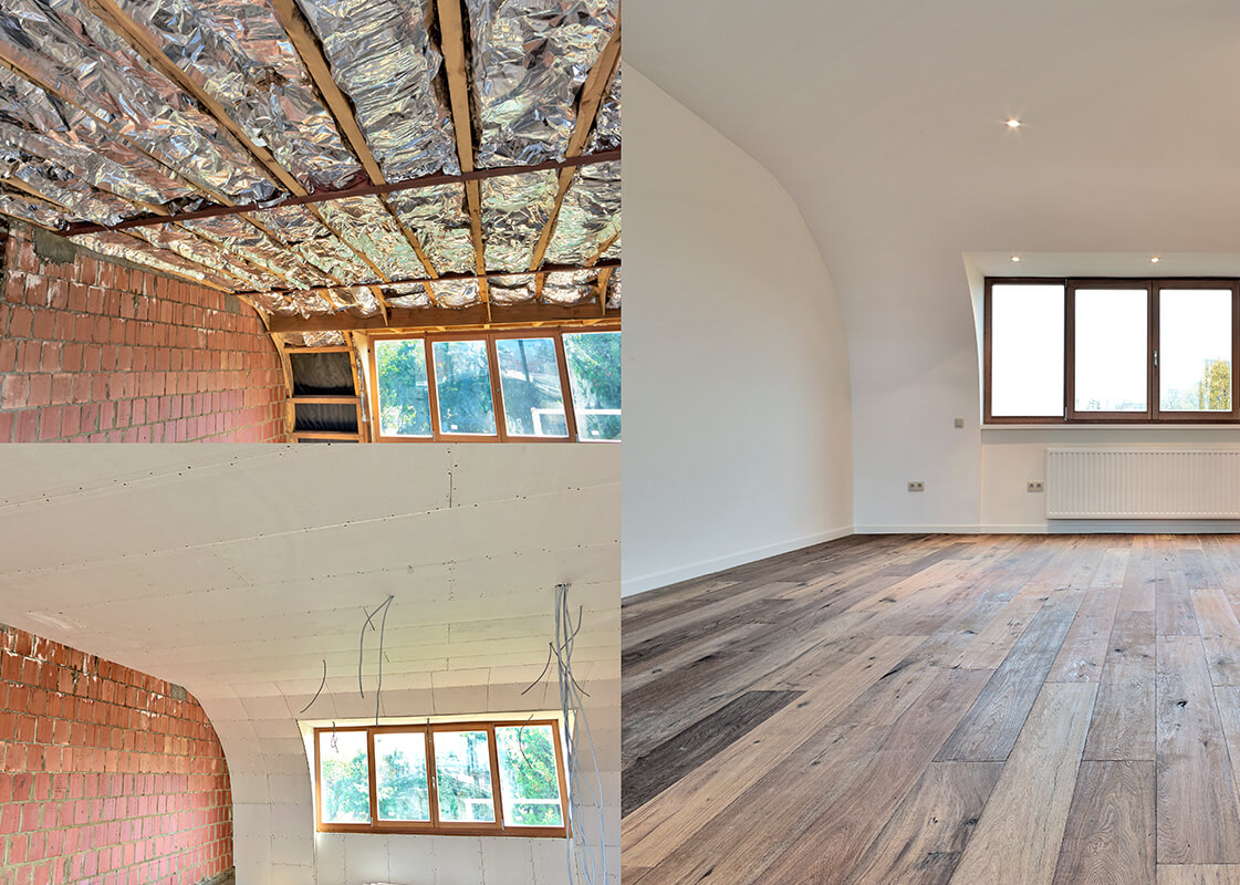 Viele unserer Gewerke greifen optimal ineinander sodass wir mit dem Trockenbau zunächst für eine durchdachte Raumaufteilung ganz nach Ihren Wünschen sorgen bevor es zu den anfallenden Spachtel und Malerarbeiten kommt.